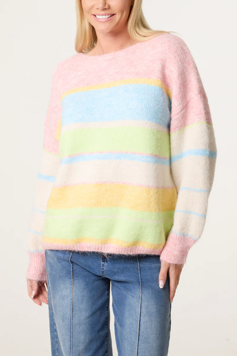 Pastel Colour Block Crew Knit Jumper