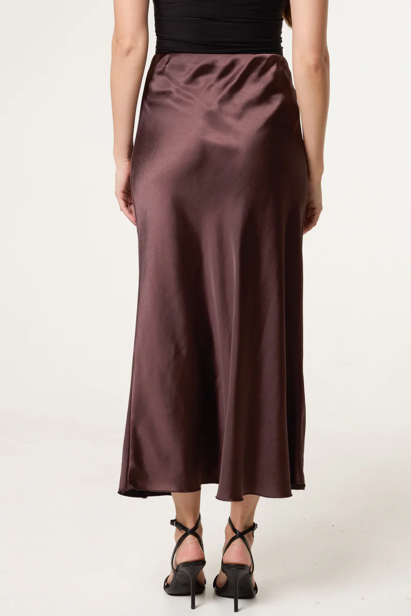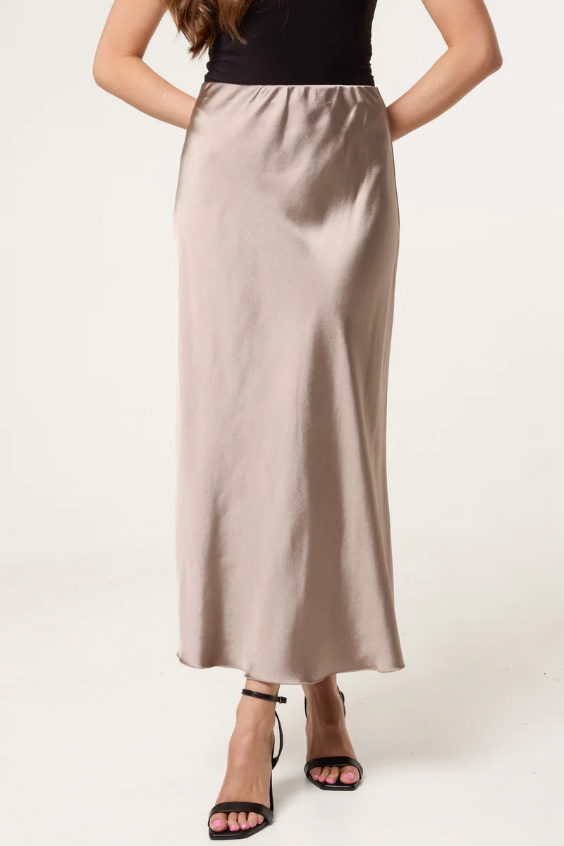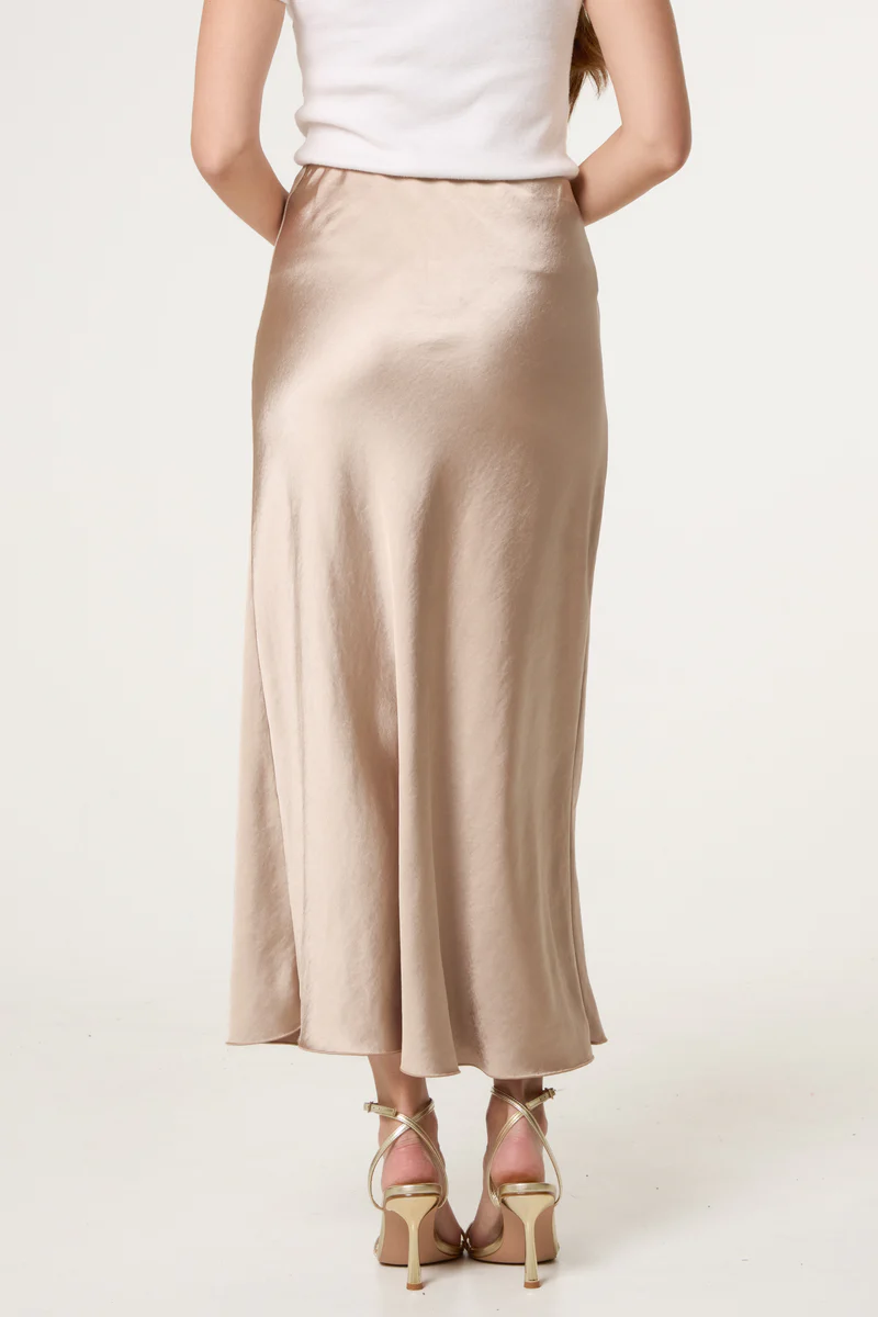 Bias Cut Satin Midi Skirt