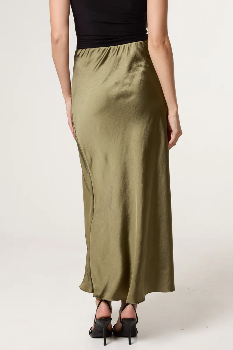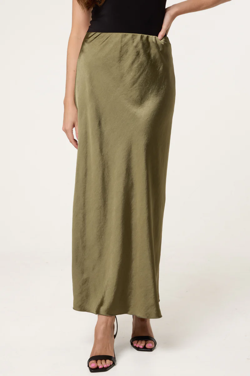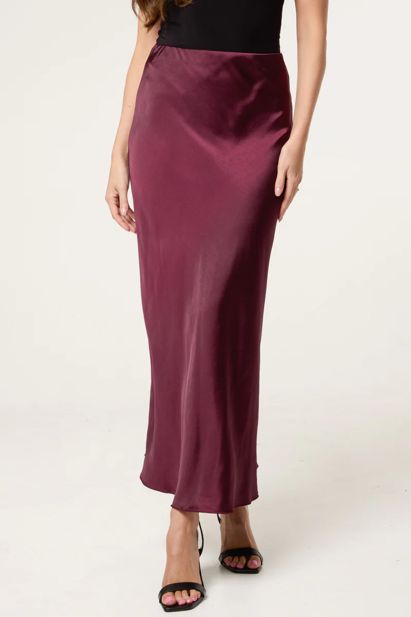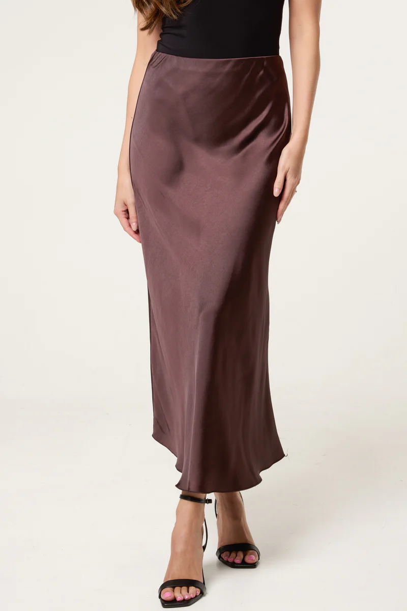 Bias Cut Satin Midi Skirt