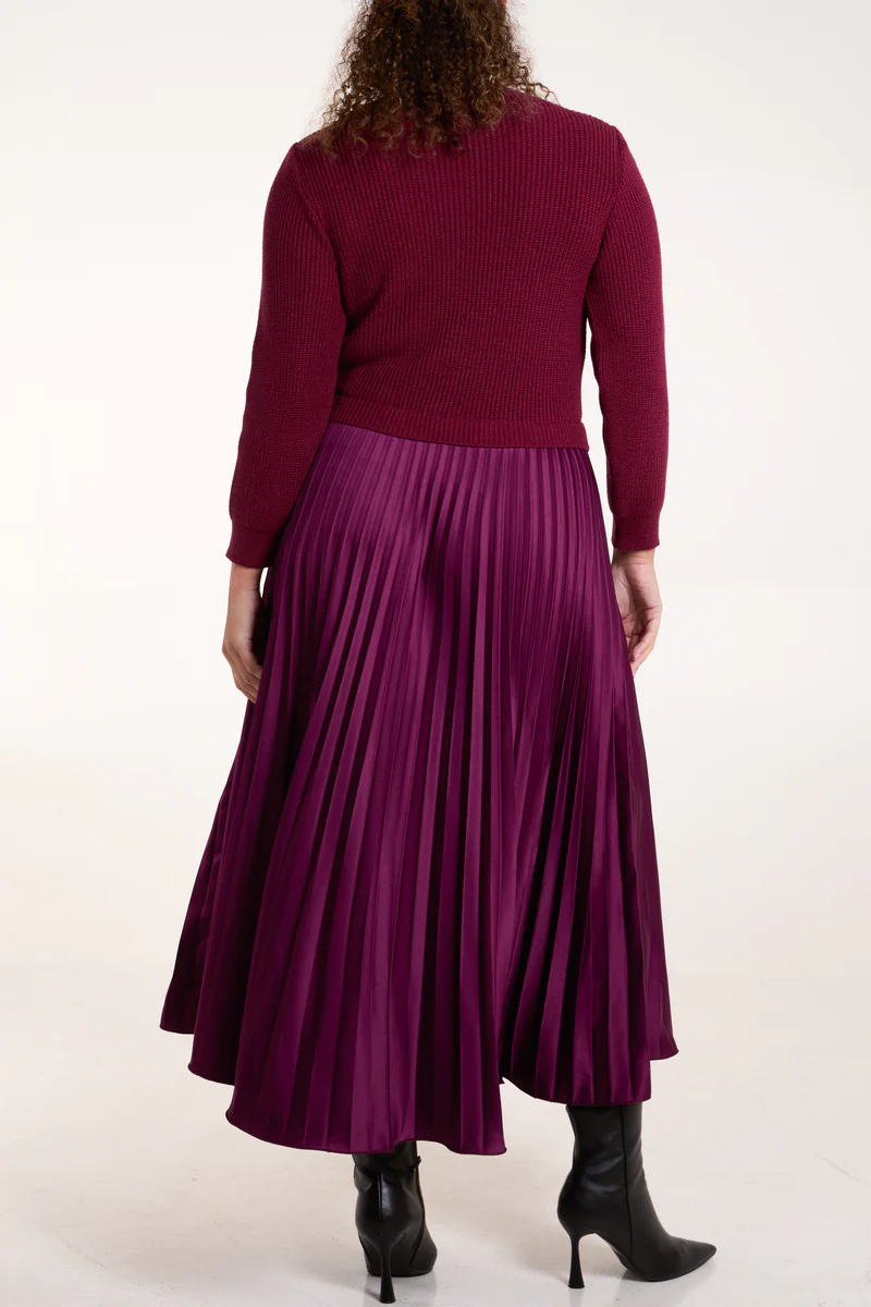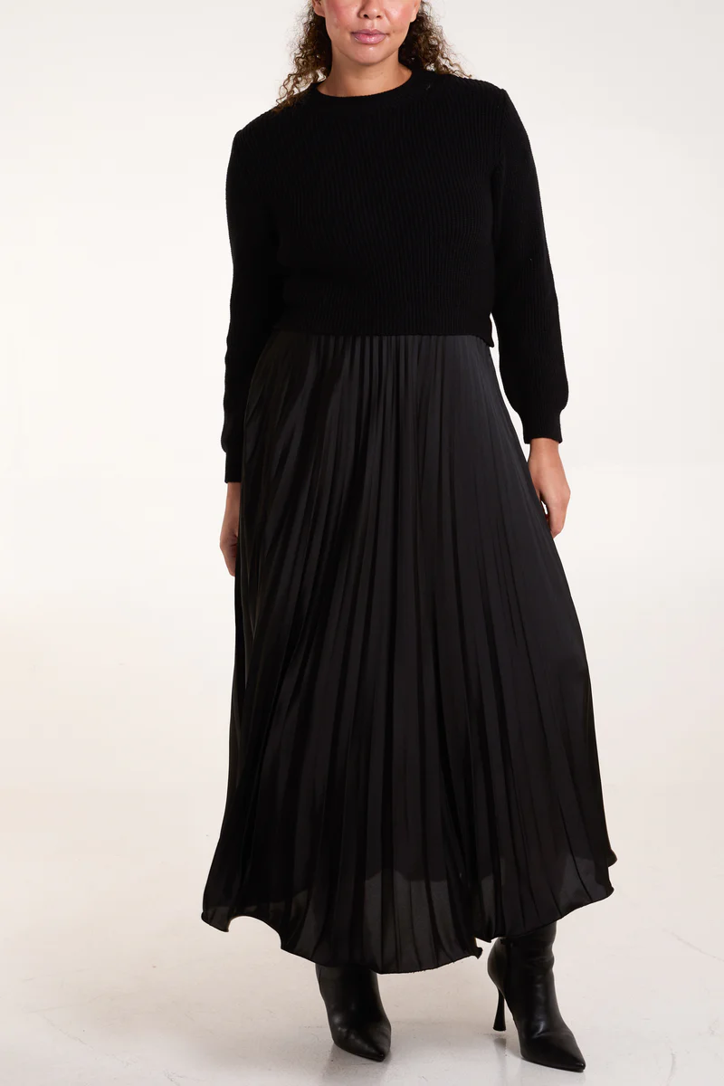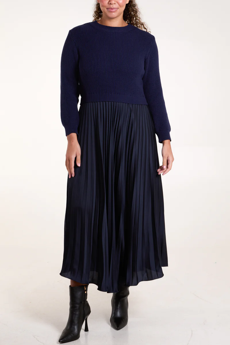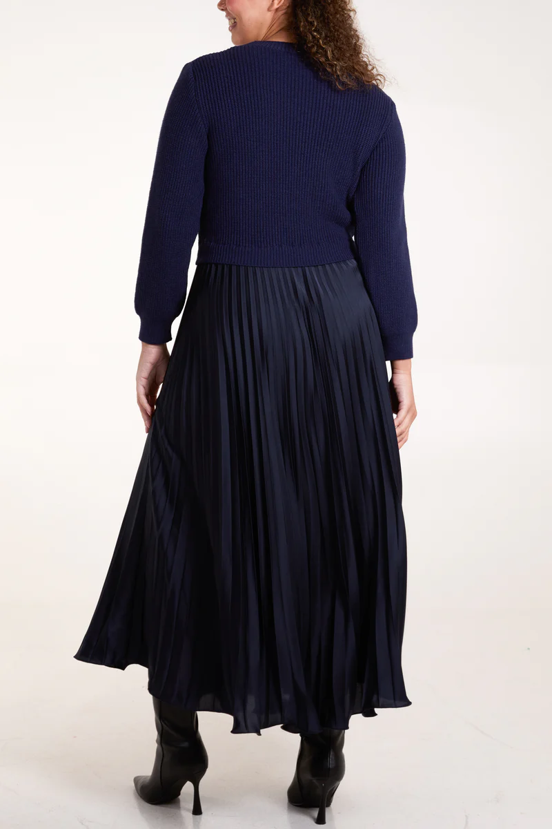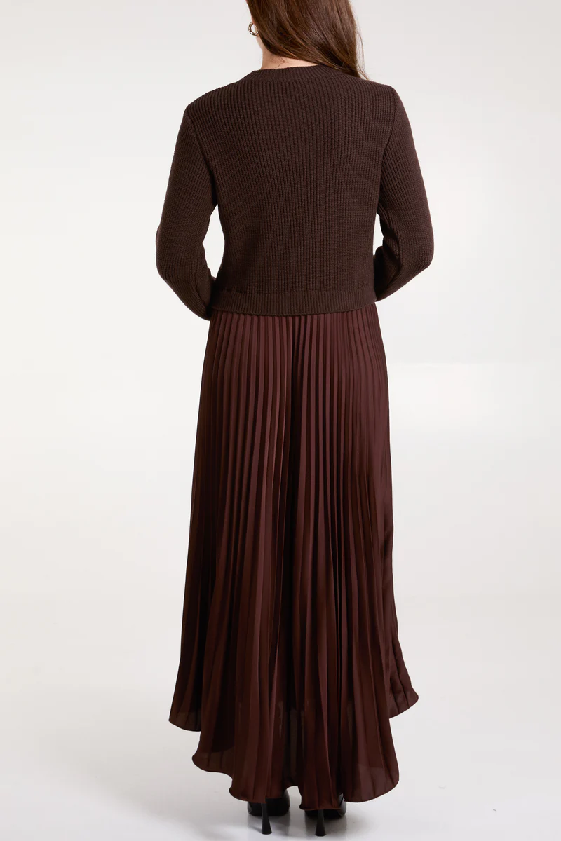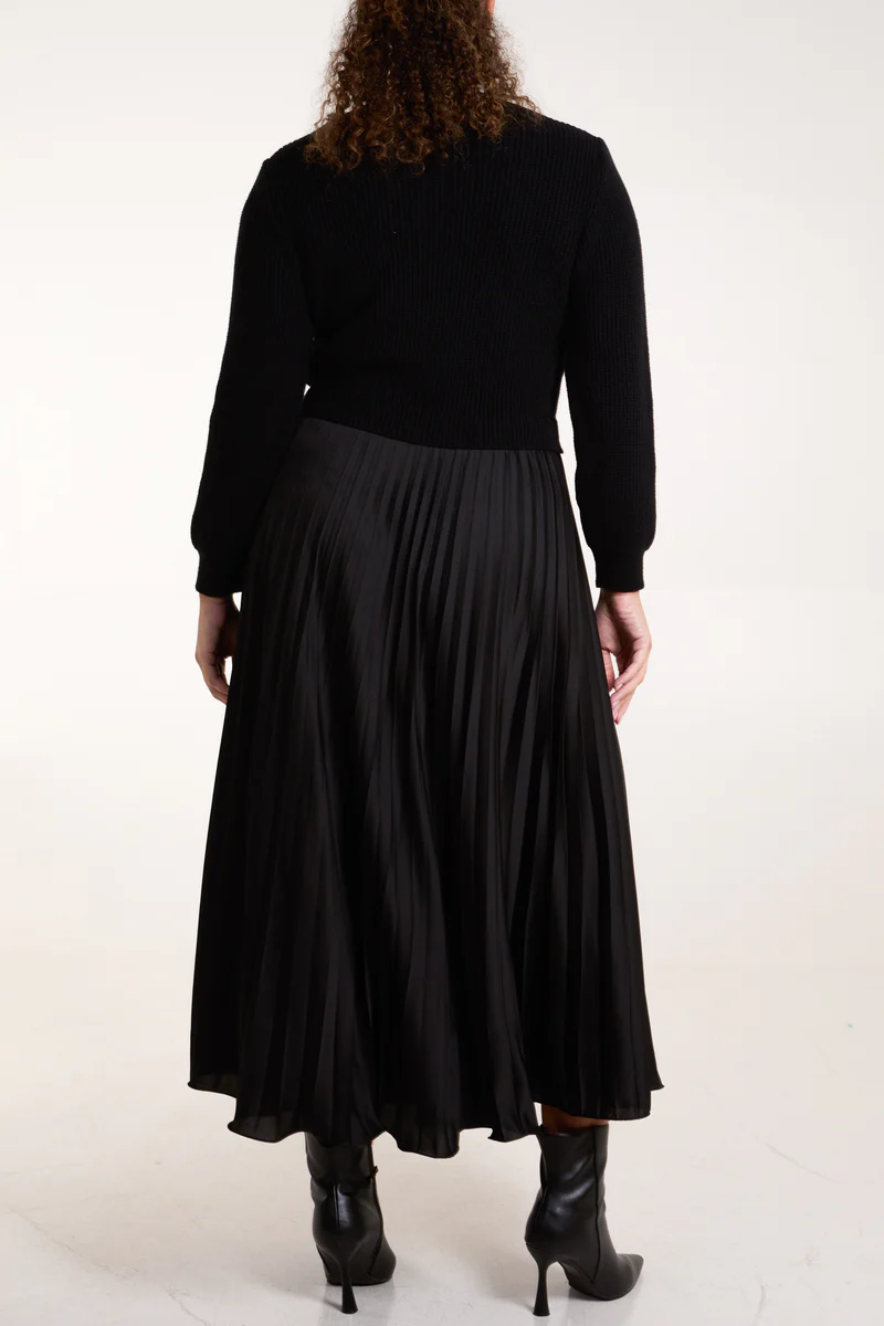 Add effortless sophistication to your wardrobe with this beautiful pleated skirt dress. The skirt flows beautifully and works well with the knited jumper style top. Its perfect for both day or night. You can really dress this up for an event or evening wear, equally it works well in the daytime.