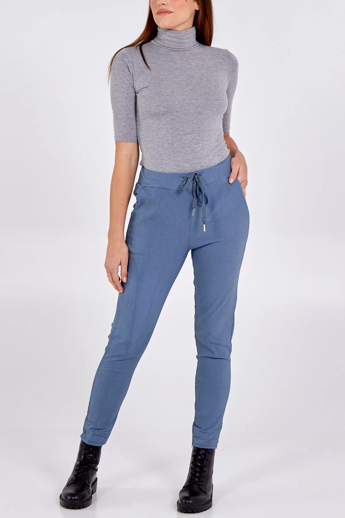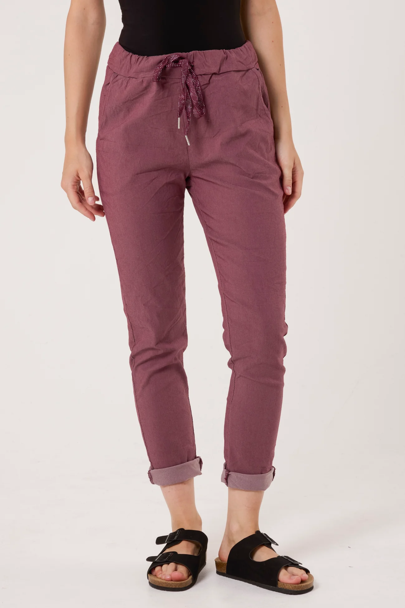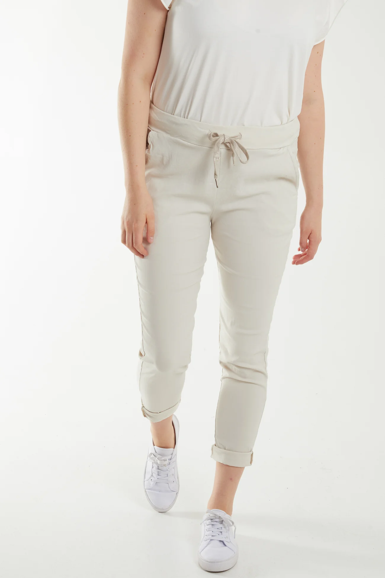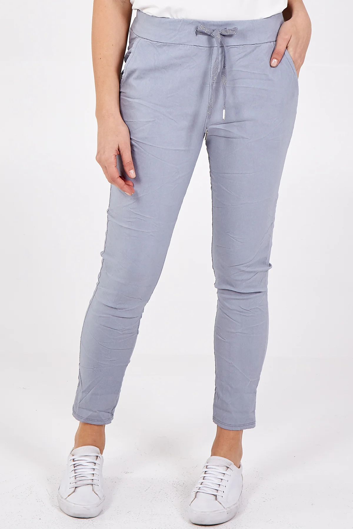 If you haven’t heard of ‘Magic Pants’ they are a stretchy comfortable trousers with an elasticated waist. From our Made in Italy collection they are Magic as they stretch to fit quite a few sizes within the SM or ML category.