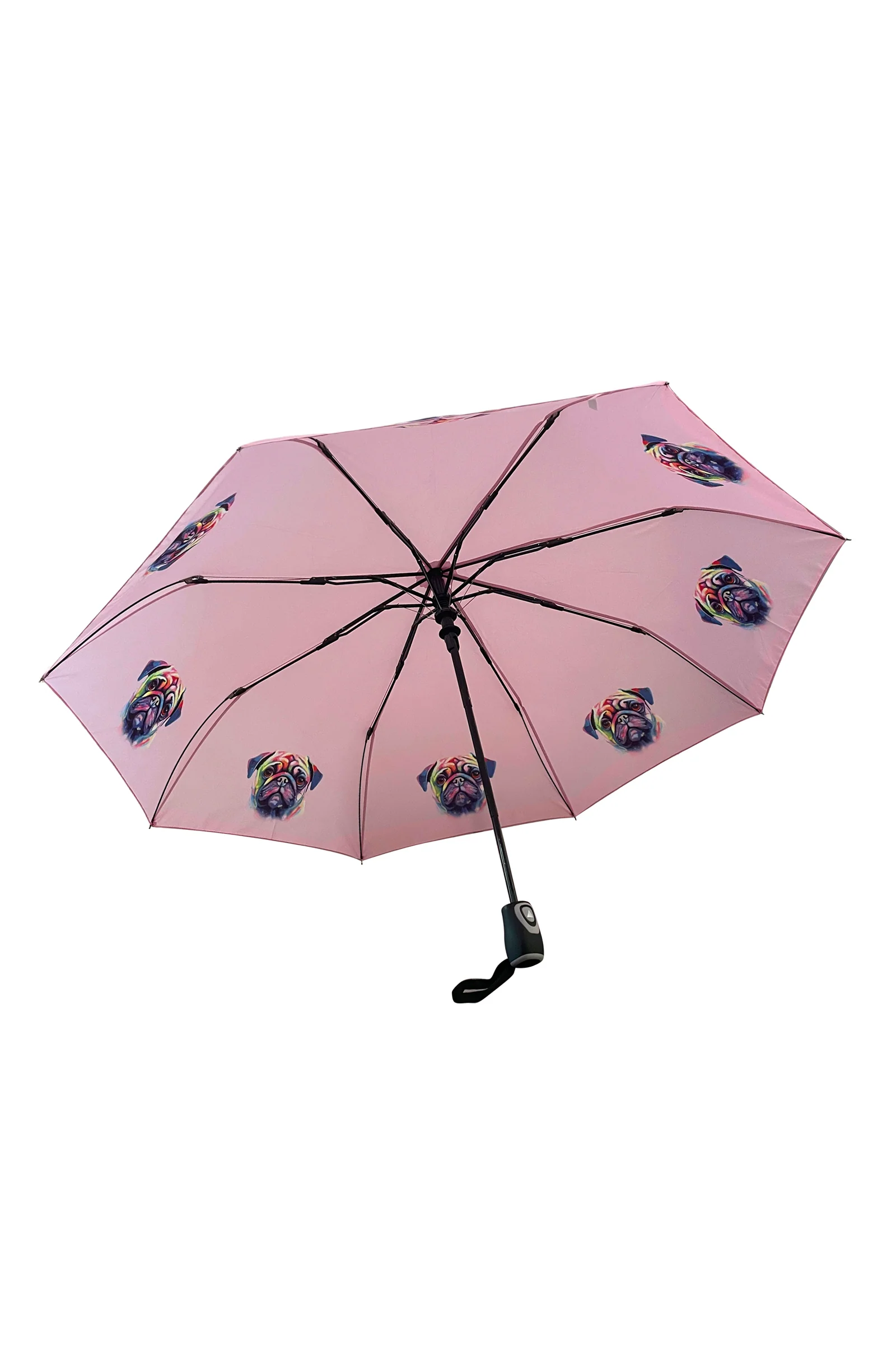 This lovely Pug umbrella opens to 112cm and is 30cm when closed