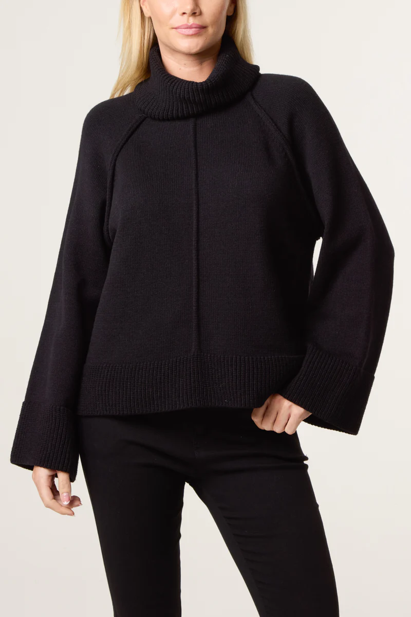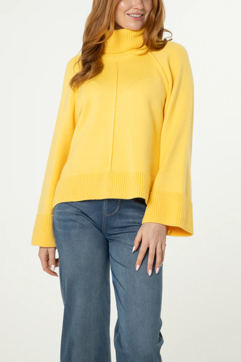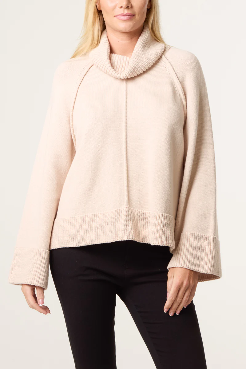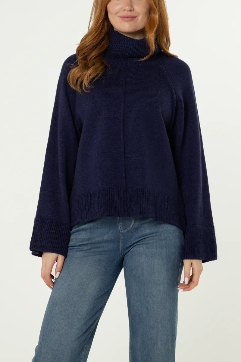 This soft knit Roll neck is a great new season style. Quirky and cool sleeve and finish to the hemline.