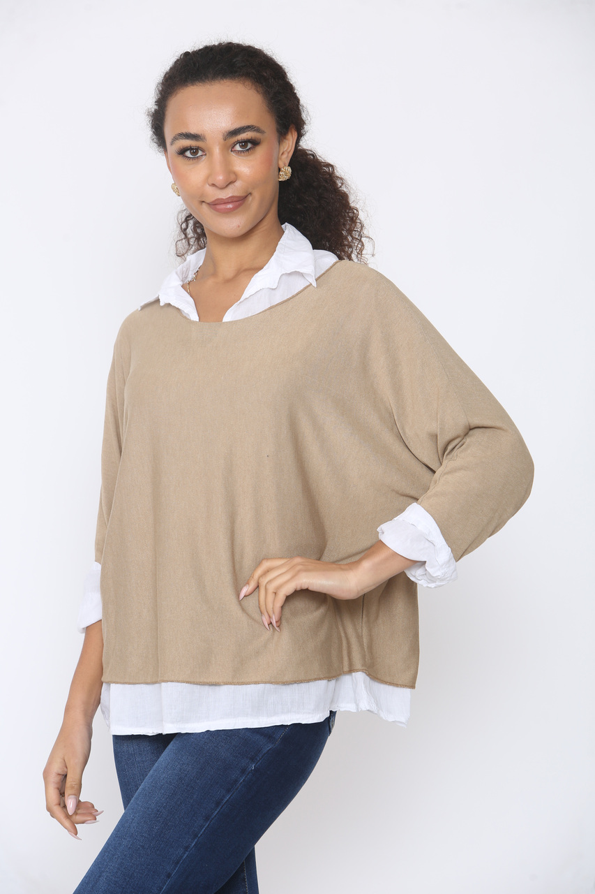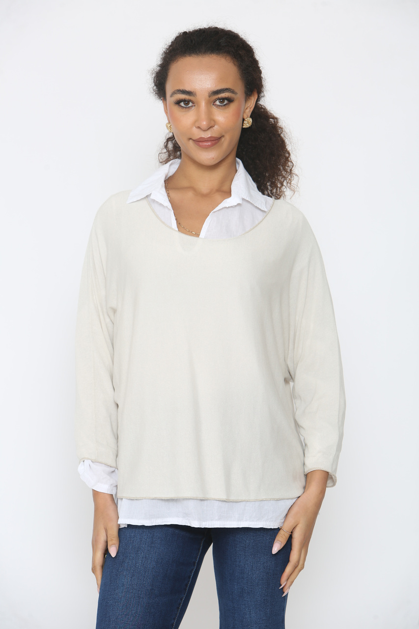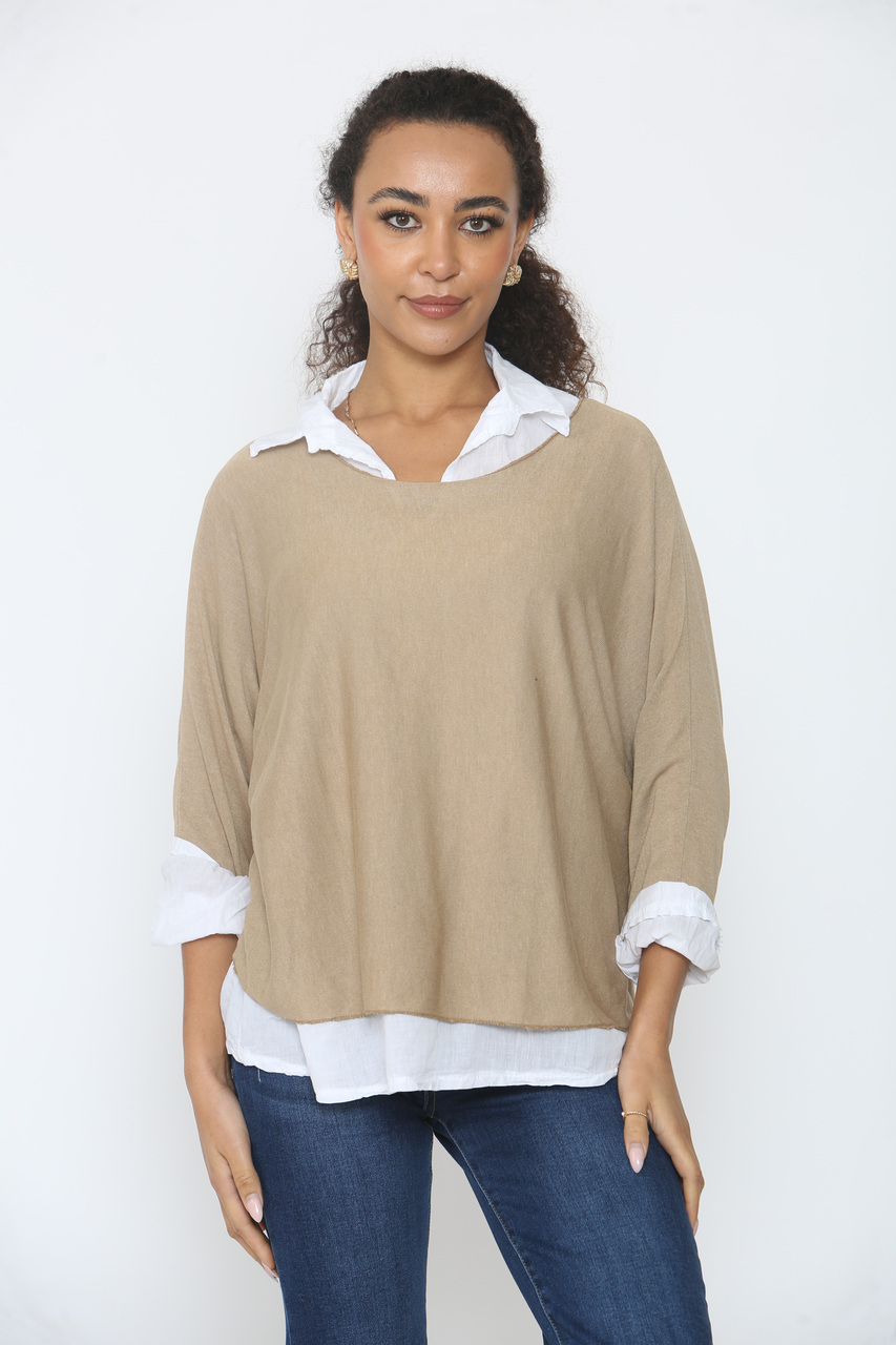 This is a great casual combo for the everyday. The 2 prices are separate and can be worn together or on there own. The top is a super lightweight jumper. Pair with jeans or pants, great colour palette to choose from